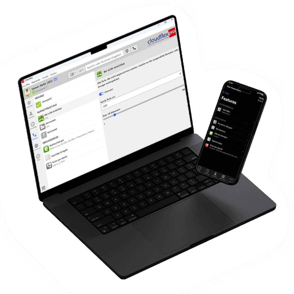 Cloudflex Pro ist unser flexibles Kommunikationssystem aus der IPA Cloud – verfügbar auf all Ihren Endgeräten. Kommunizieren Sie im Büro, auf Ihrem Handy, Laptop oder klassisch am IP-Telefon.